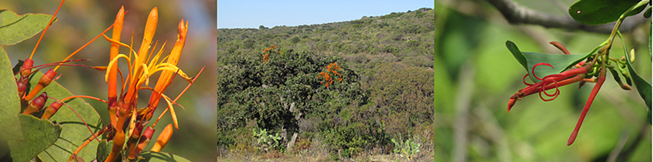 Psittacanthus ramiflorus es una especie de muérdago hemiparásita que presenta dos grupos de hospederos principales en México: el género Quercus, al oeste; y lauráceas (principalmente del género Ocotea) al sur del país. Además, es una especie de distribución disjunta, por lo que nos preguntamos si las poblaciones asociadas a distintos grupos de hospederos están diferenciadas en otros aspectos como su información genética, morfología floral y especies polinizadoras y dispersoras que puedan estar indicando un proceso de divergencia.