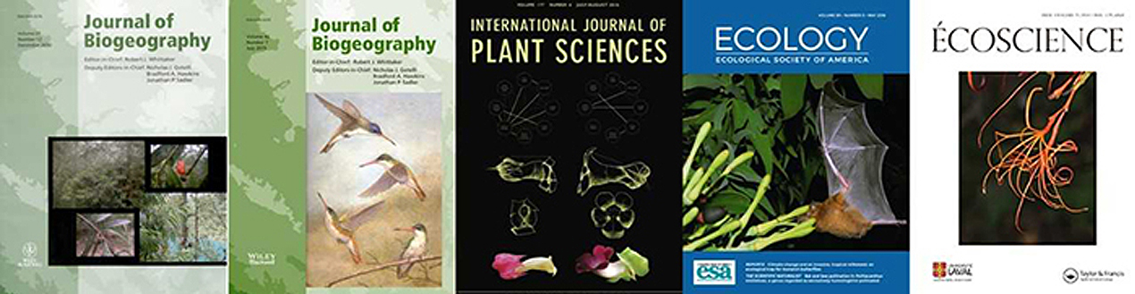 - 63. Ruiz-Sánchez, E. & J. F. Ornelas (2014) Phylogeography of Liquidambar styraciflua (Altingiaceae) in Mesoamerica: survivors of a Neogene widespread temperate forest (or cloud forest) in North America? Ecology and Evolution 4: 311–328 (ISI-2014: 2.320).