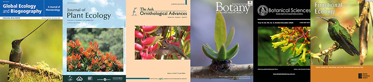 - 66. Licona-Vera, Y. & J. F. Ornelas (2014) Genetic, ecological and morphological divergence between populations of the endangered Mexican Sheartail Hummingbird (Doricha eliza). PLoS ONE 9: e101870 (ISI-2014: 3.234).